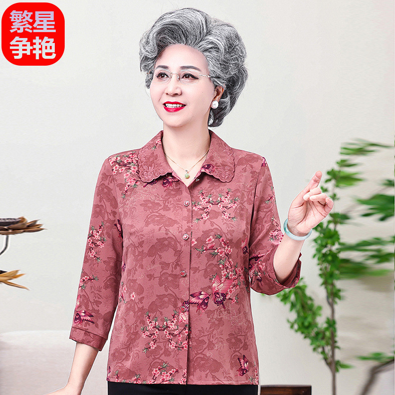 高齢者、おばさん、夏服、おばさんシャツ、70代ママラペルスーツ、カーディガン服、トップス、七分袖