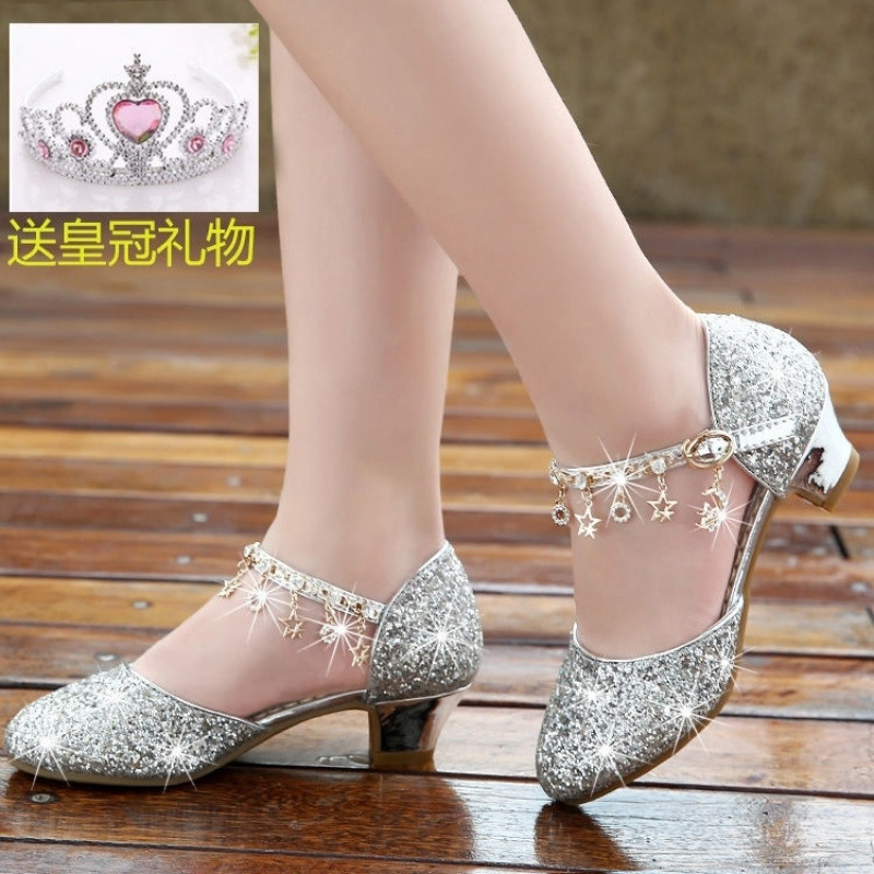 女の子プリンセスシューズクリスタルサンダルハイヒールキャットウォークシューズピアノ韓国ファッションステージダンスパフォーマンスシューズ