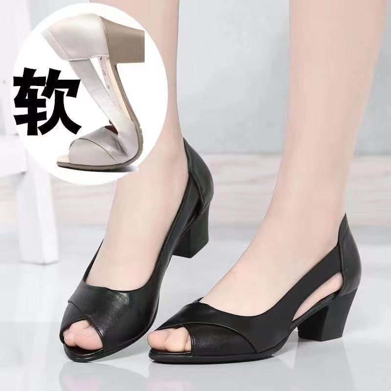 厚底靴、女性用ソフトレザーサンダル、2024年夏新作中年ママシューズ、滑り止めレディースフィッシュマウスシューズ