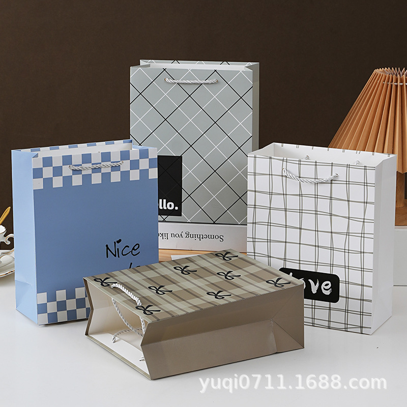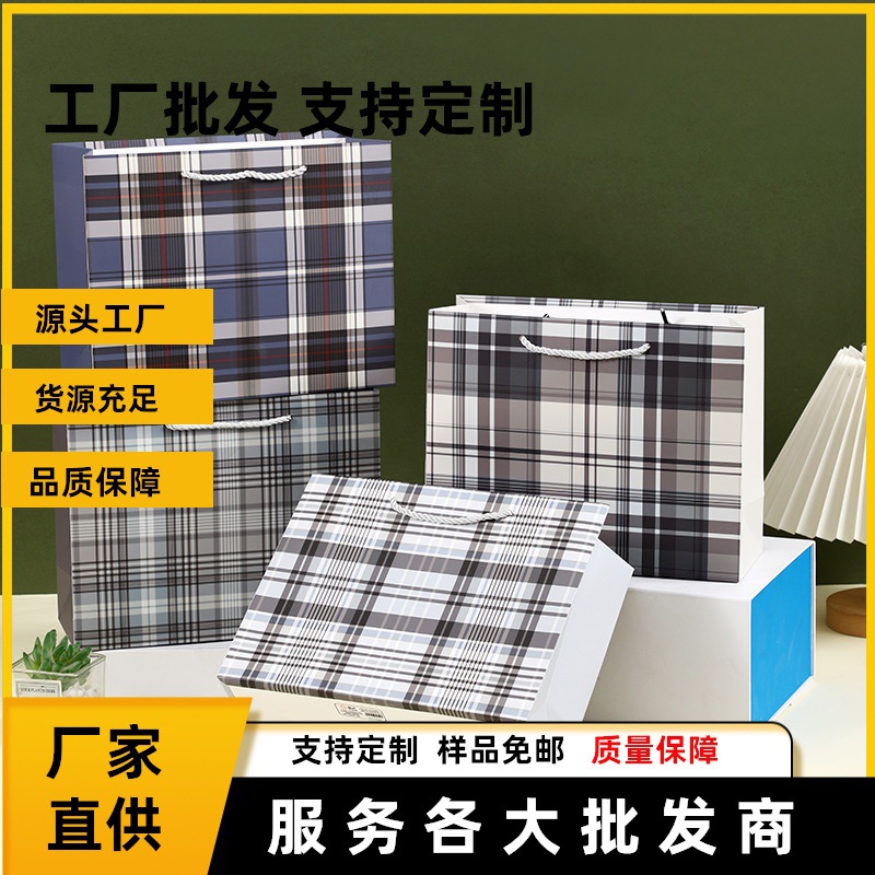 クリエイティブなパーソナライズされたシャツチェック柄ホワイトカードギフトバッグビジネストラベルポータブル包装袋ショッピングモールショッピングバッグ在庫あり