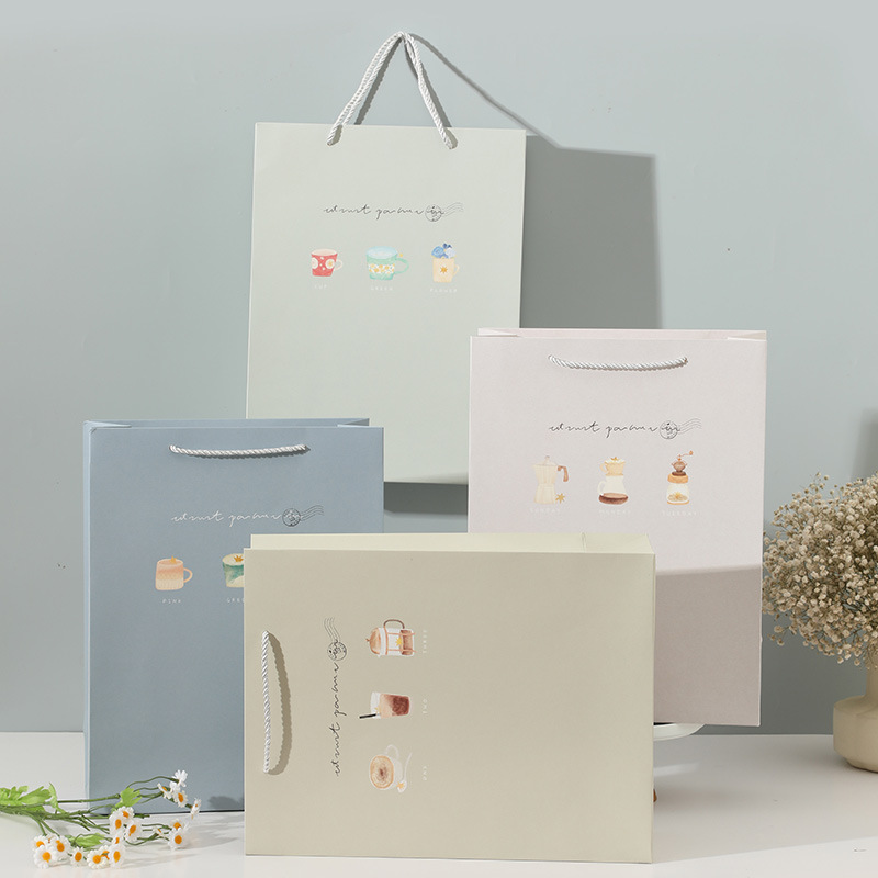 創意的なコップの図案の新型の白いカードの贈り物の袋のお土産の誕生日の祝日の贈り物の包装の紙袋の現物の卸売り