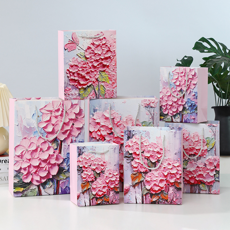 新しいピンクの花のファッションの美しい手提げの贈り物の袋の誕生日の新年の贈り物の油絵の包装袋の現物の卸売り