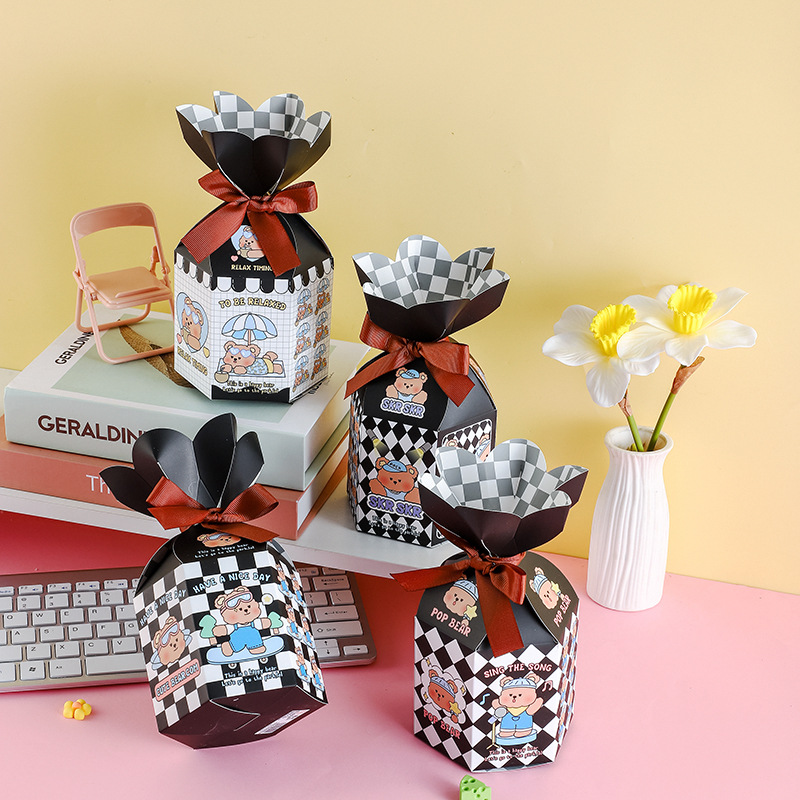 蝶結びのふたをひっくり返して小さい漫画の贈り物の袋の赤ちゃんを掛けて贈り物の袋のキャンディーのお土産の手提げ袋のメーカーに帰って直接販売します。