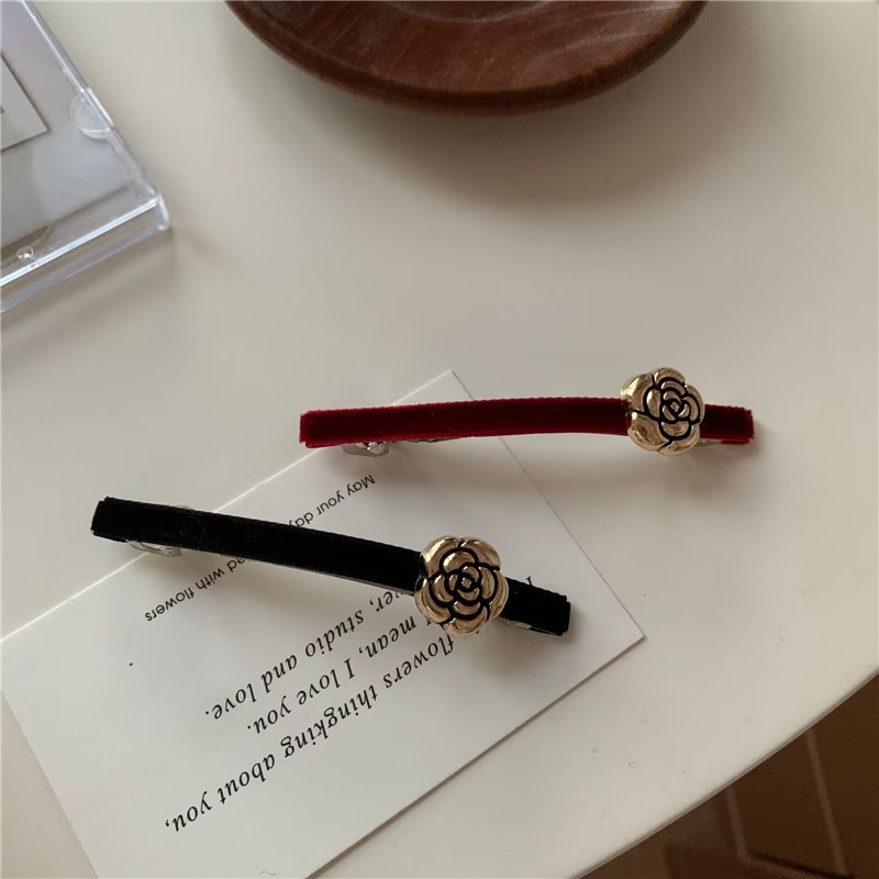 1688レトロ法ベルベットツバキの花バネクリップ高級感前髪クリップサイドクリップ後頭部半団子ヘアピン