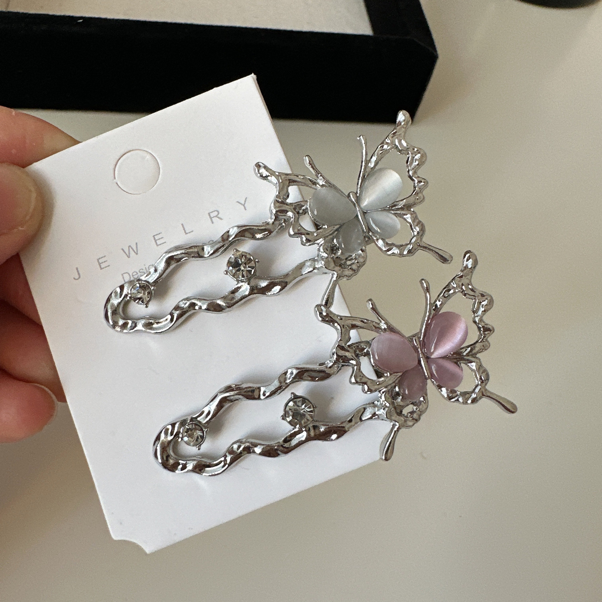 1688高級感銀色の蝶カモの口は液体の前髪のサイドを挟みます。
