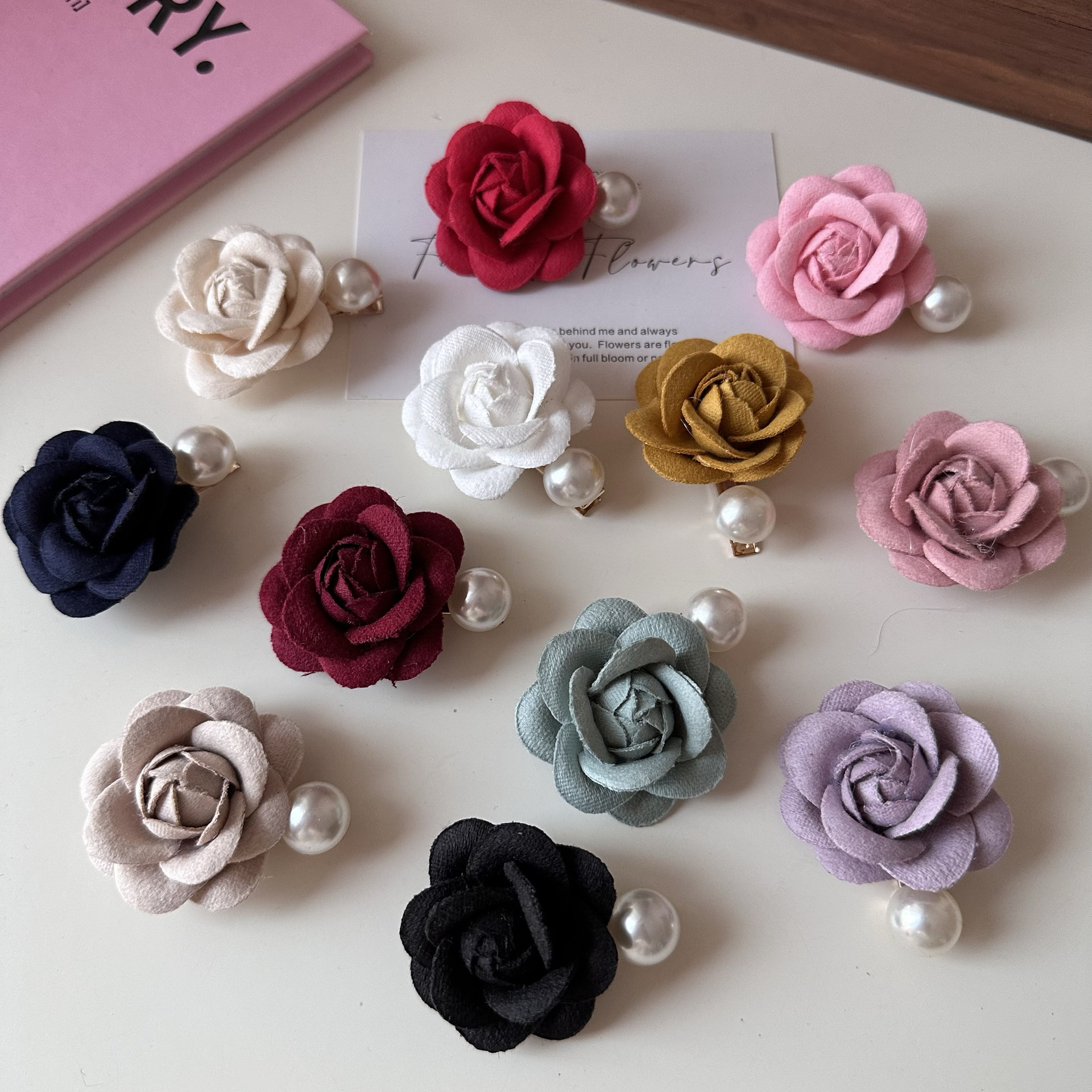 フランスのレトロで優雅なレトロなツバキの花の真珠は少女の前髪を挟んで髪を砕きます。