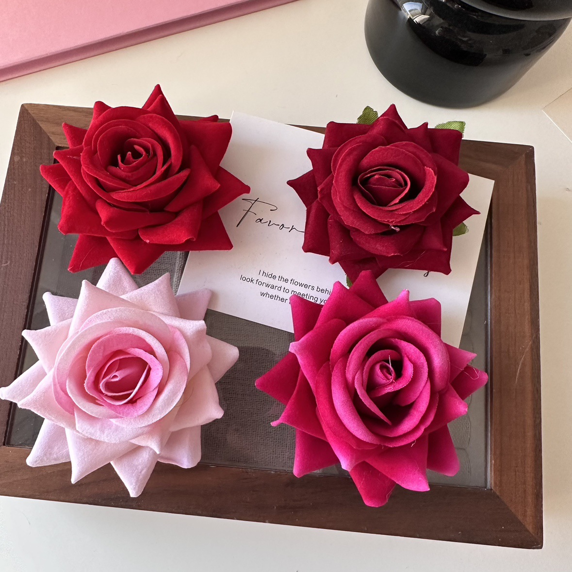 田セイ薇の同じモデルの赤いバラのヘアピンのレトロな花のヘアピンの側のカモの口は髪飾りの女性を挟みます。