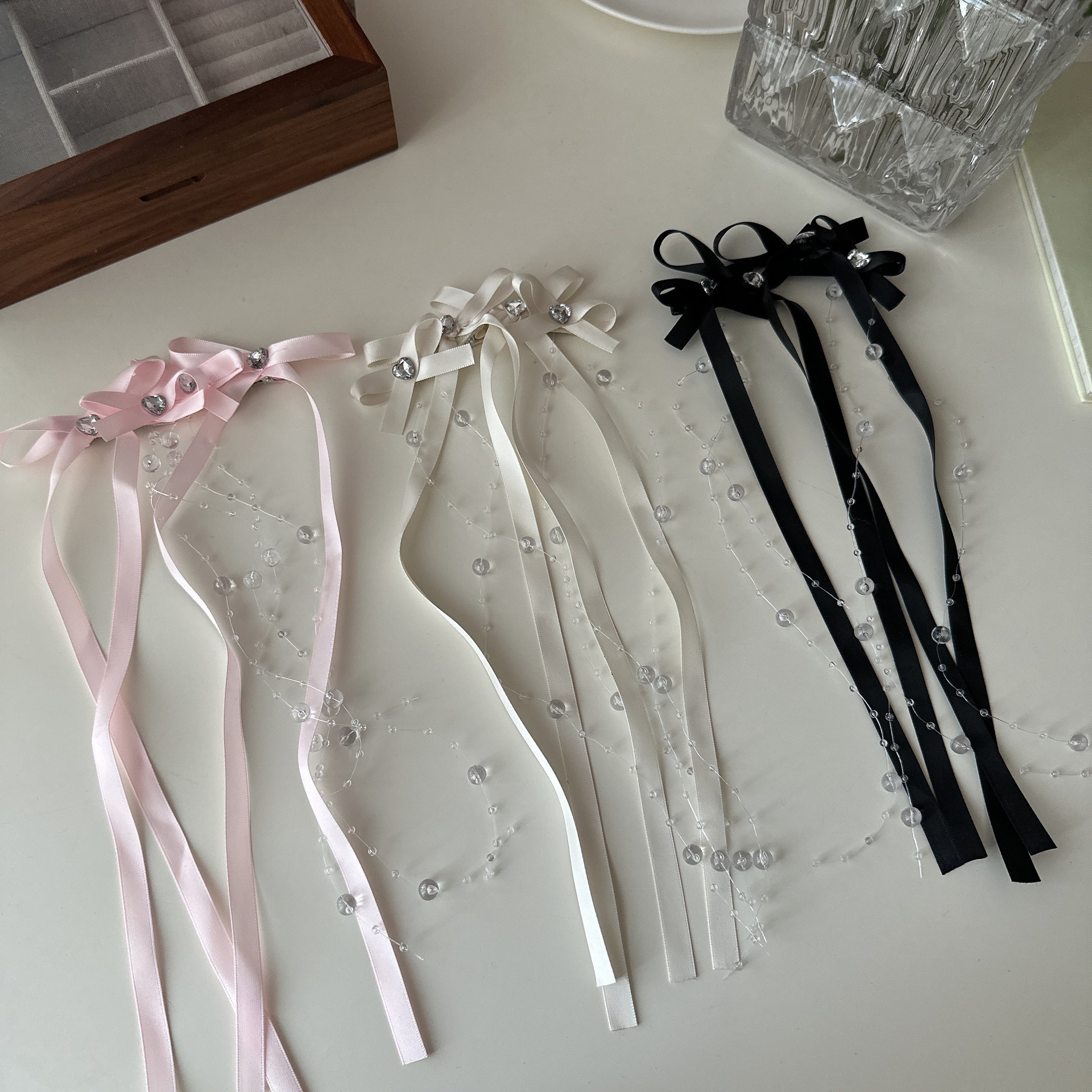 かわいい少女リボンビーズフリンジ蝶結びヘアクリップバレエ風リボンヘアクリップツインテールヘアアクセサリーヘアピン
