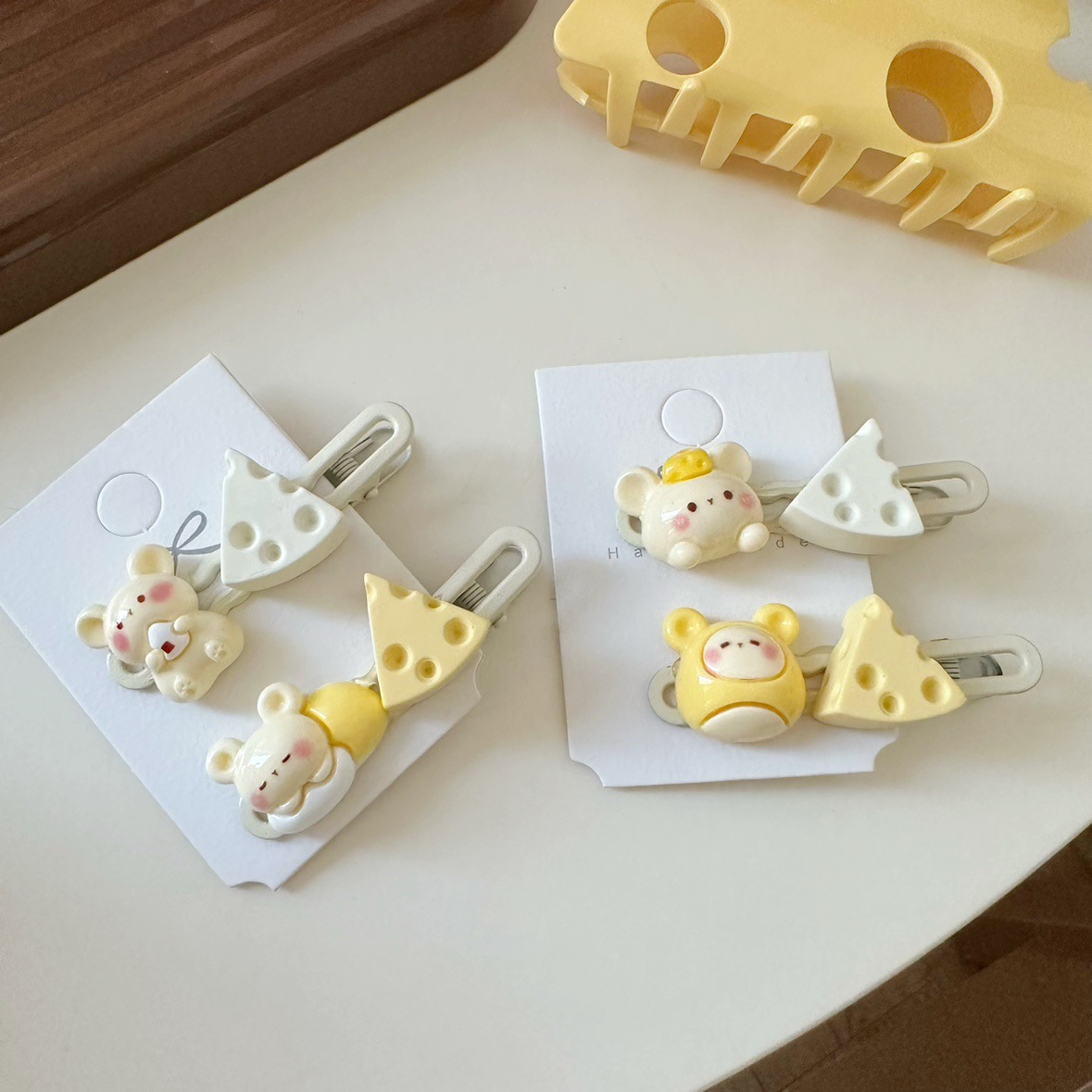 かわいい少女のネズミのチーズのヘアピンの額は前髪を挟みます。