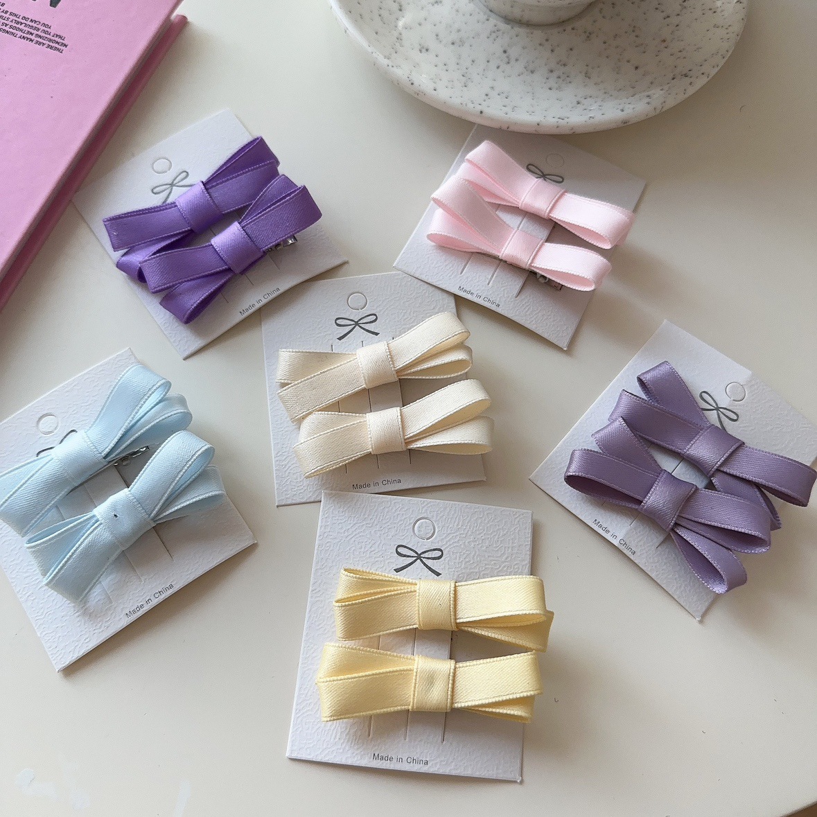 かわいいキャンディー色のリボンの蝶結びの髪は前髪を挟みます。