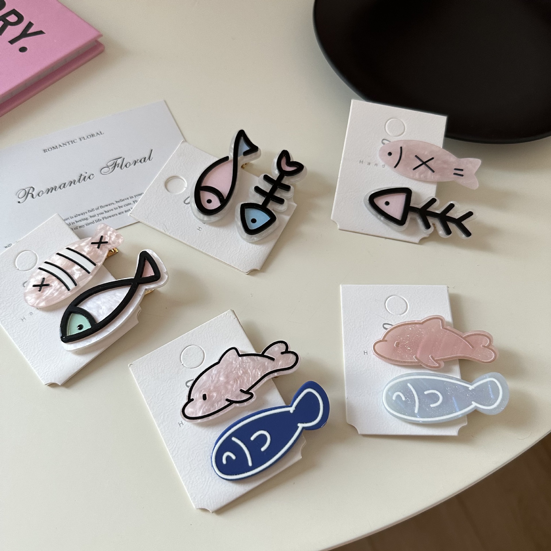 日韓の新型のかわいい小魚の小さい魚の骨の髪は前髪を挟みます。