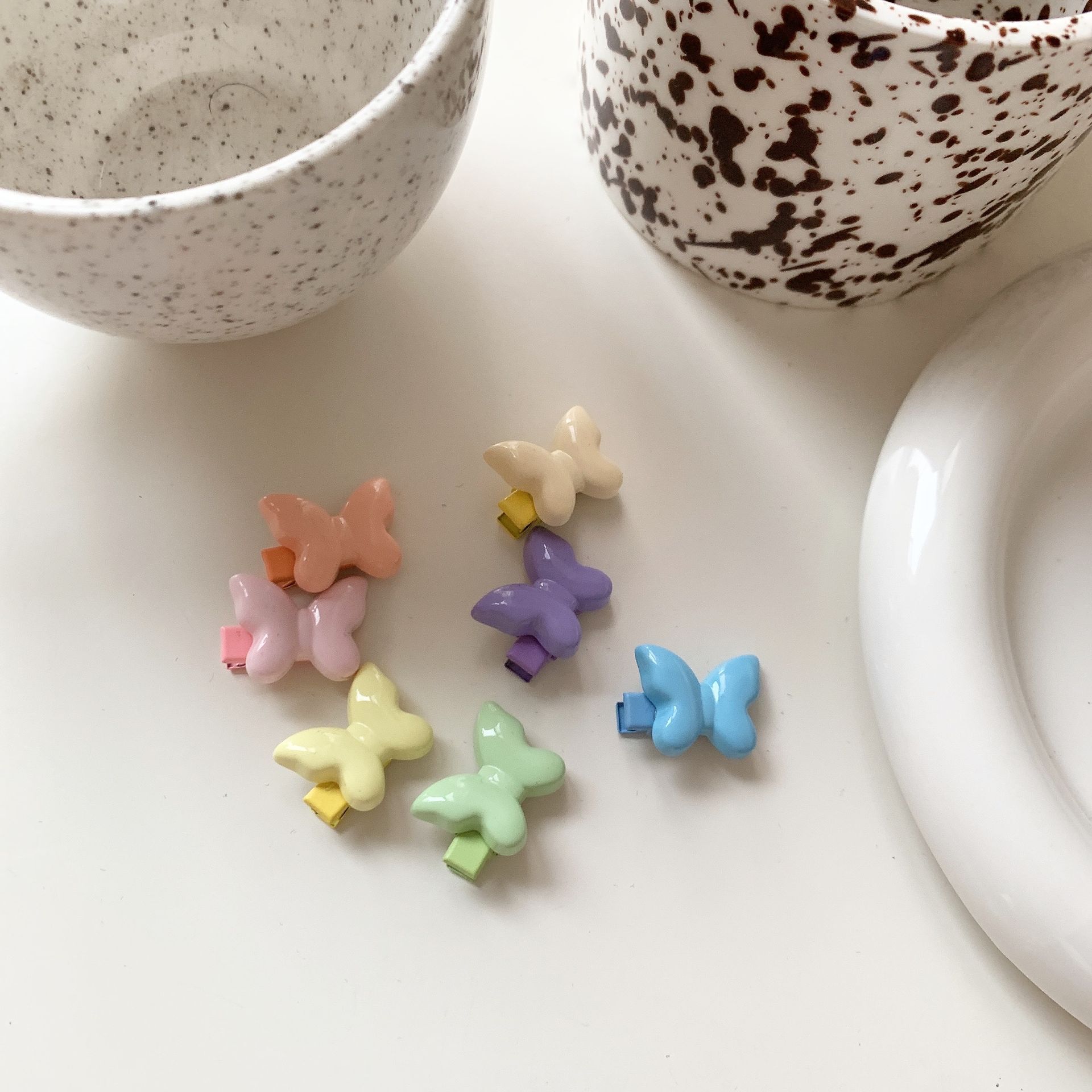 かわいい甘いキャンディー色の蝶の小さなヘアピンの少女のサイドクリップの髪のクリップの前髪クリップは日韓の髪飾りを飾っています。