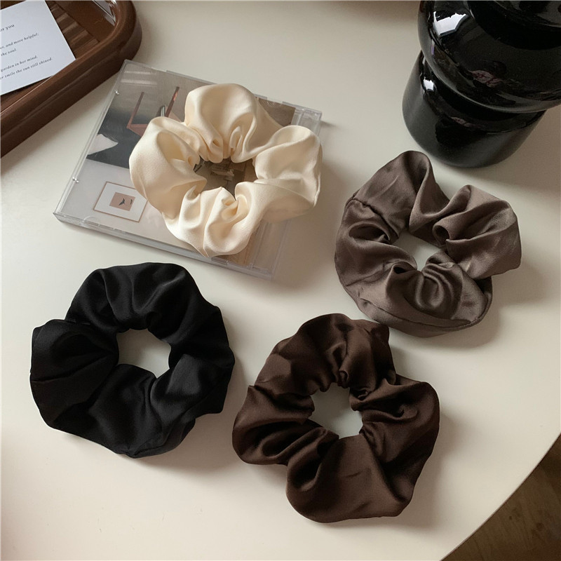 韓国のネットの赤いサテンの高級感のカレーの色系の大きい腸の輪の気質の太っている腸の輪の髪の縄のフランスの気質の頭の縄の皮の筋