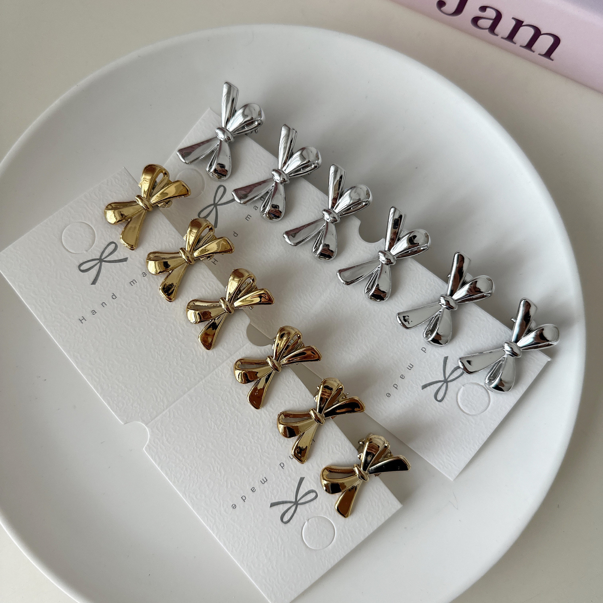 かわいい甘いクールな銀色の蝶結びの小さいサイズのヘアピンのサイドの前髪のクリップの額の砕毛のクリップのヘアピン