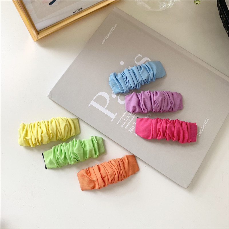 韓国の新型のしわのキャンディー色の布芸のヘアピンのサイドクリップinsの少女系の前髪クリップの甘い森系のヘアクリップ