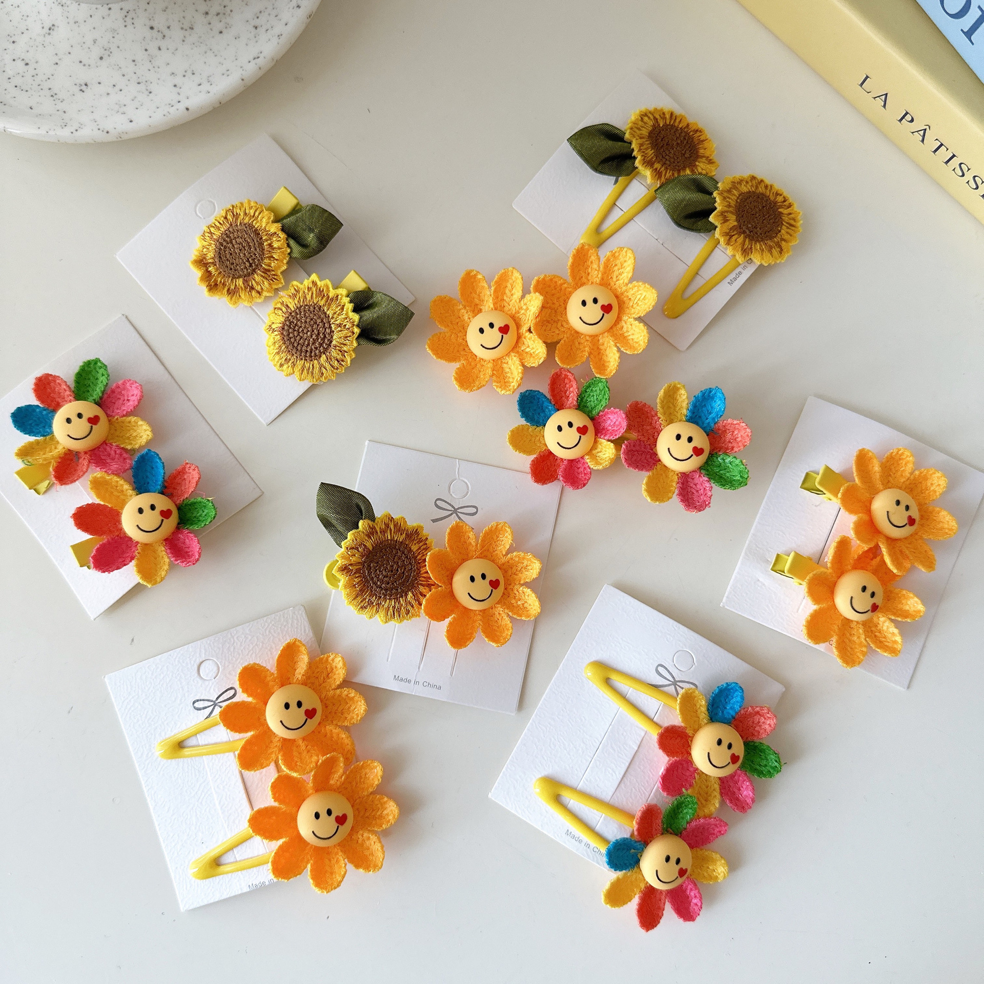 かわいい子供カラー太陽花ヘアクリップ前髪クリップ砕髪ひまわりヘアピンサイドクリップ花笑顔bbクリップ
