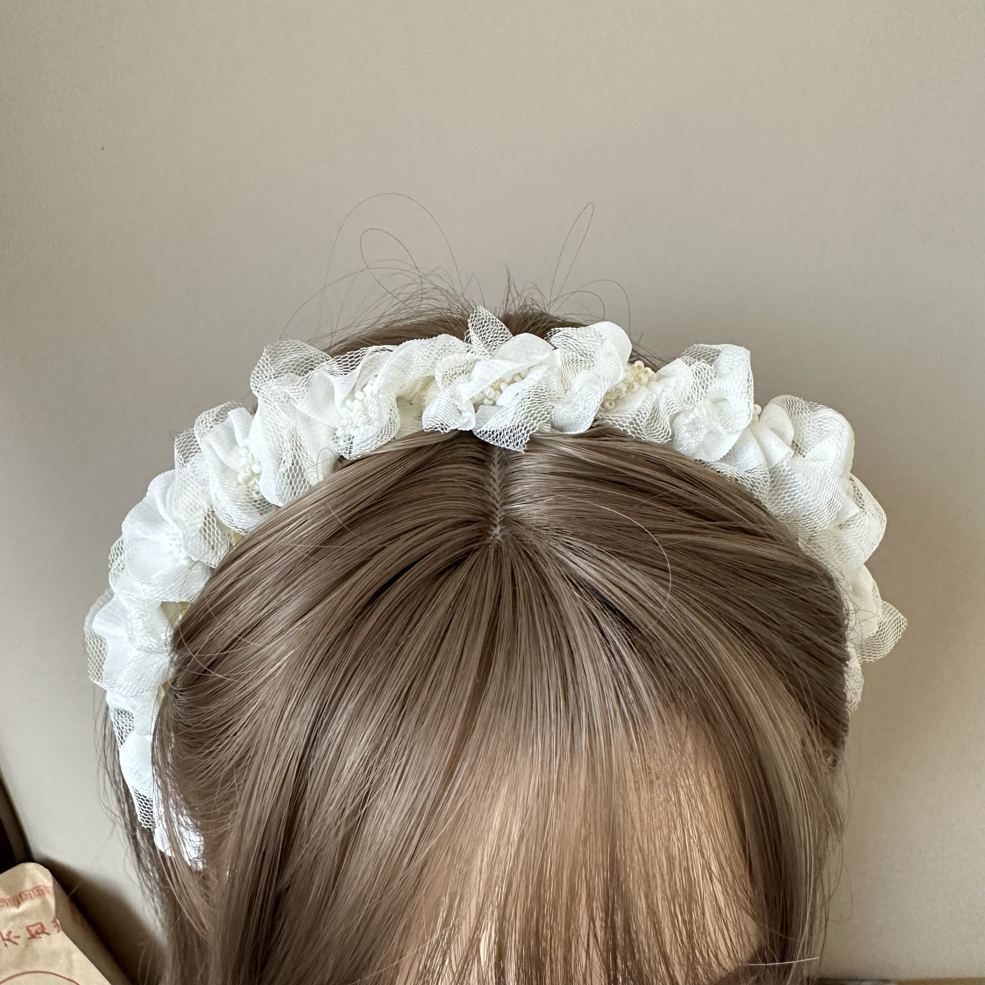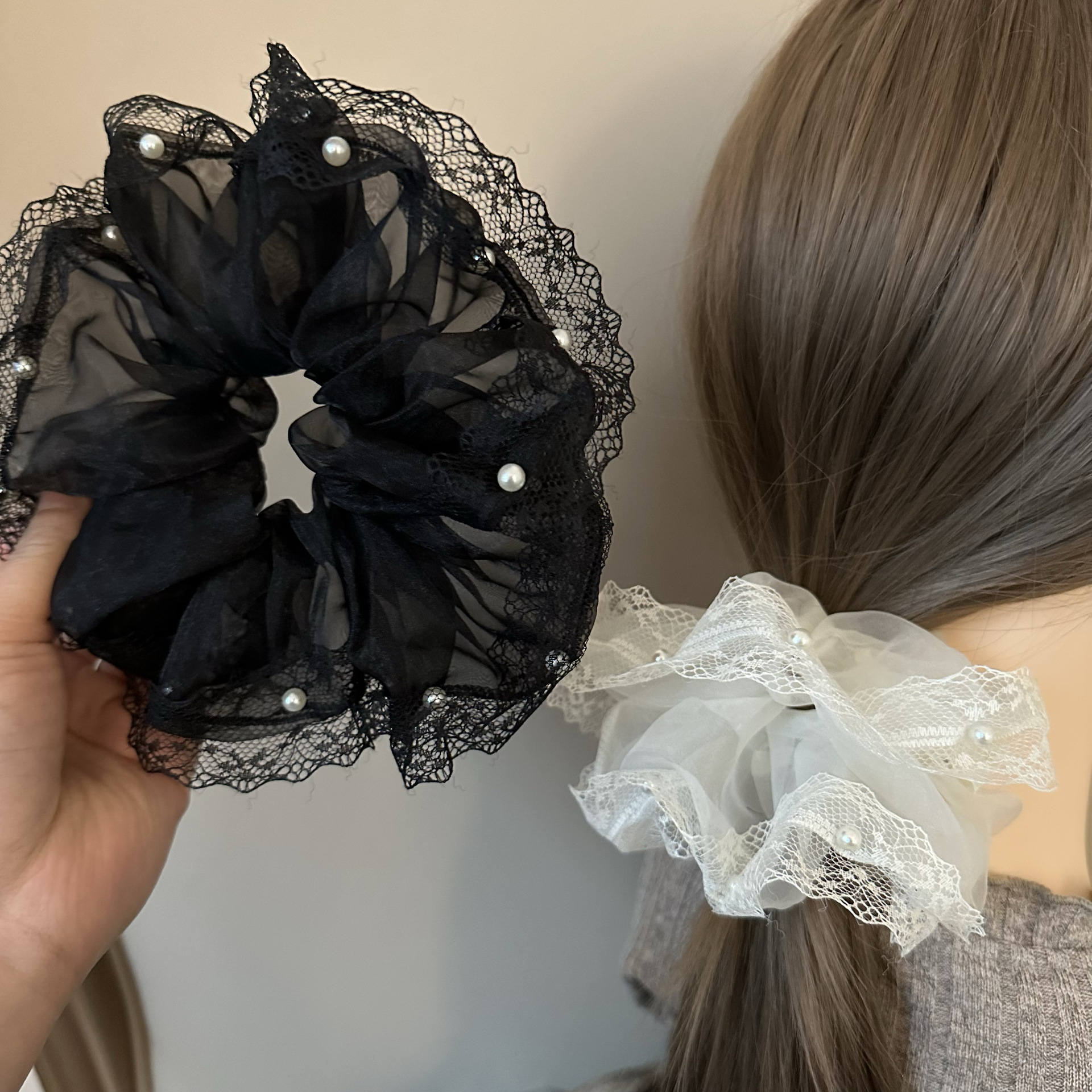 日本と韓国の同じスタイルの黒と白のレースのパールヘアゴム、ファッショナブルで妖精のようなエレガントな帽子、高級ヘアアクセサリー