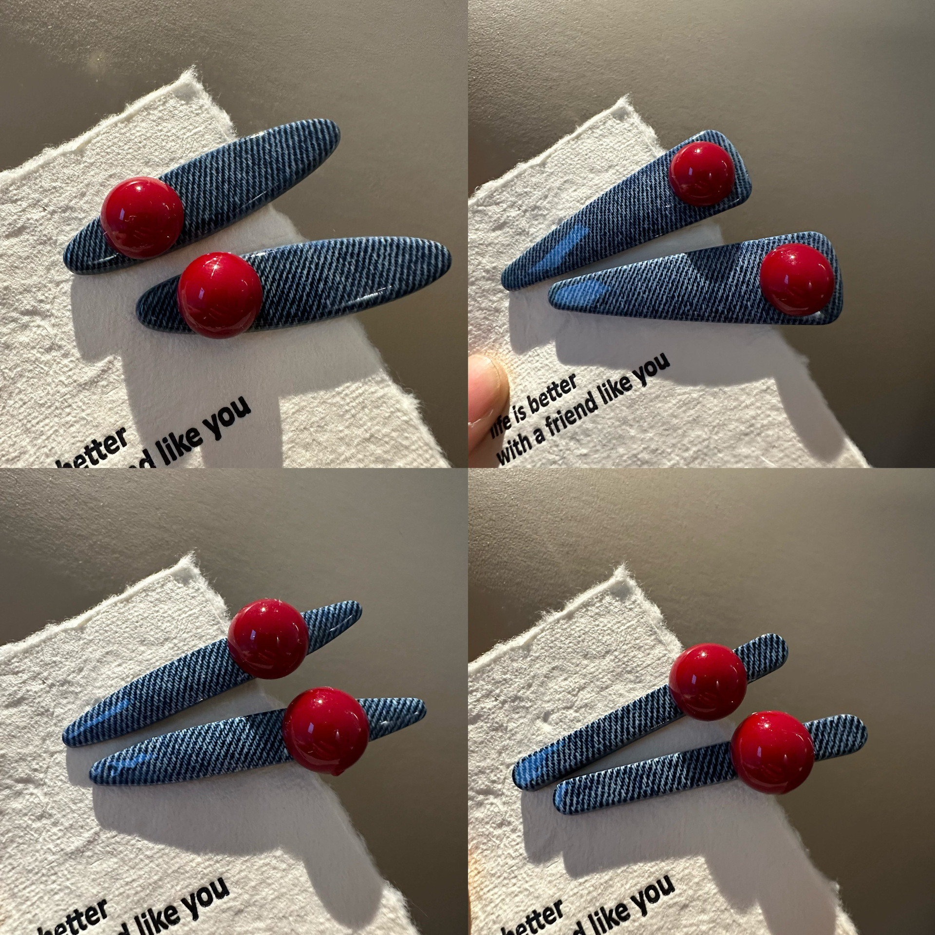 韓国風赤と青のコントラストデニムヘアピンオリジナルデザイン前髪クリップヘアエッジクリップハイエンドヘアアクセサリー工場直接供給