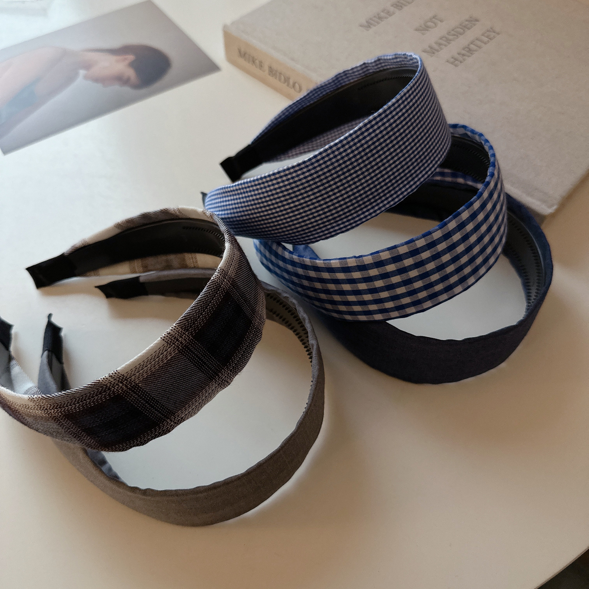 韓国系の青い格子のデニムの広い辺のカチューシャのファッションの百合の顔の小さいカチューシャのカチューシャの春夏の新型のヘアアクセサリー