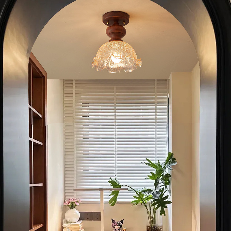 中世スタイルの玄関クローゼットシーリングランプフレンチレトロランプウォールナットハイエンドアイスクラック廊下通路ランプ