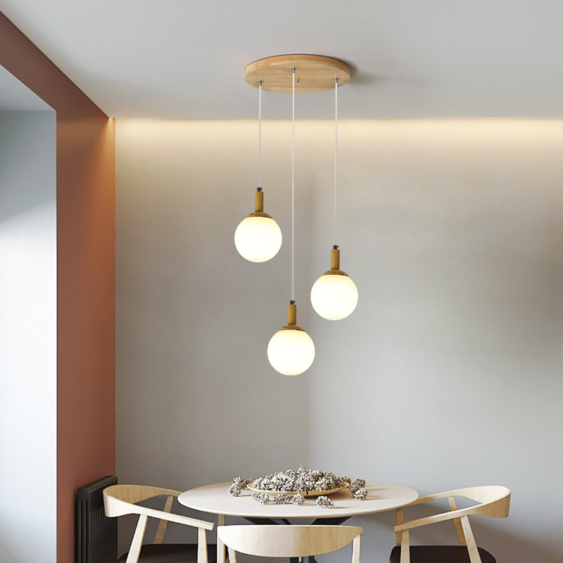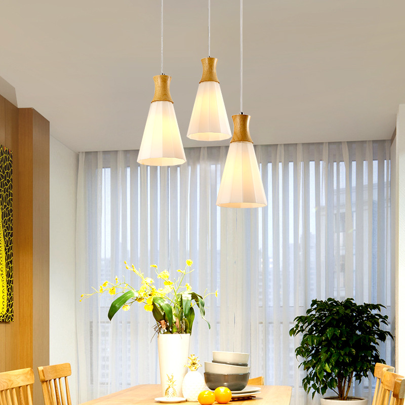 レストランのシャンデリア三頭現代シンプル北欧原木風食堂スタンド別荘階段長吊実木照明器具