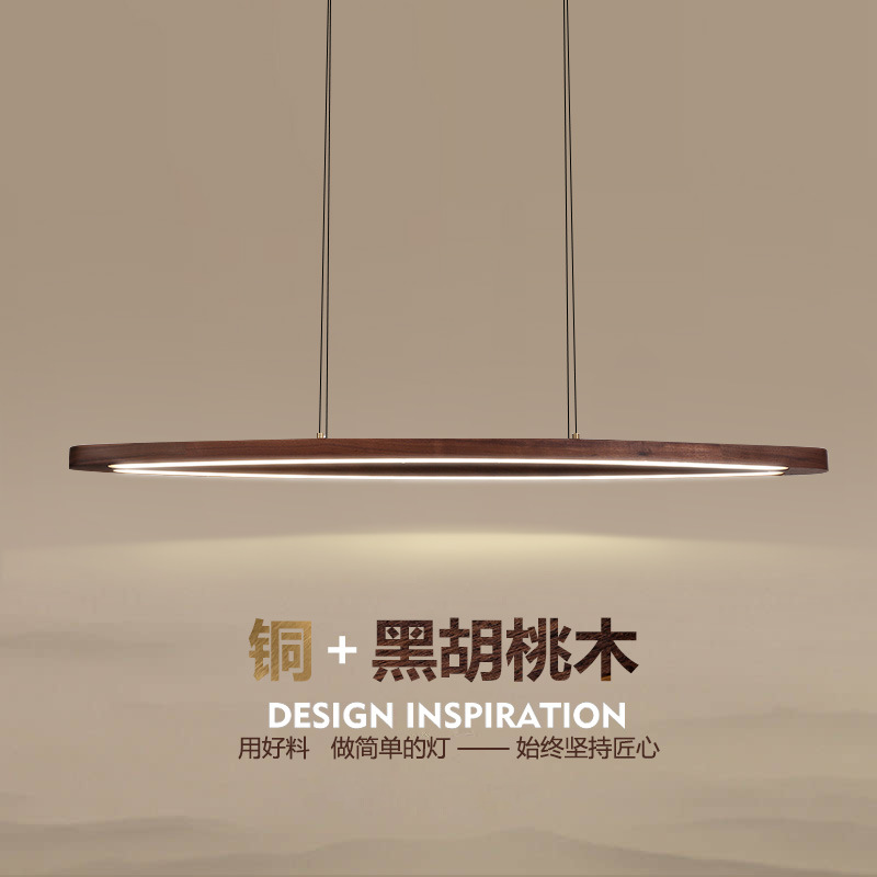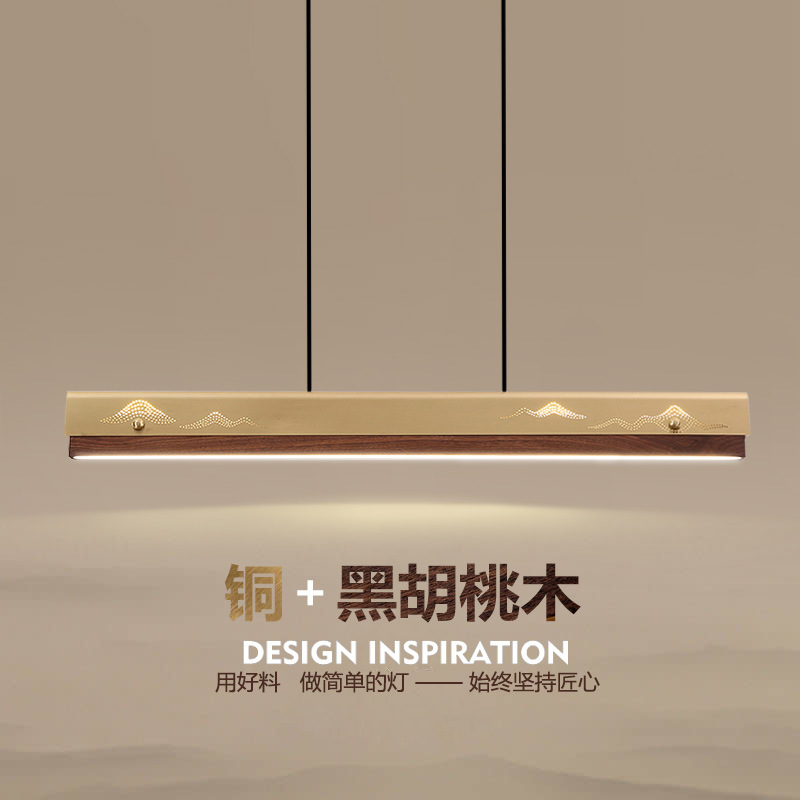 新中国式レストランのシャンデリアはシンプルで現代的な全銅禅意茶室の書斎の胡桃木の極めて簡単な長いled照明器具です。