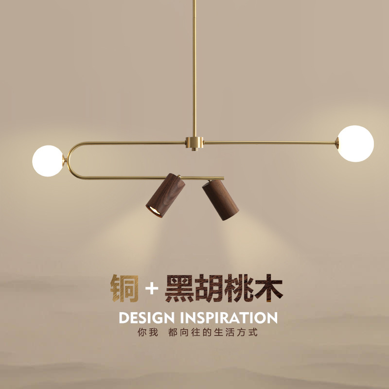 レストランのシャンデリアは簡単で、現代の胡桃木禅意茶室の書斎の事務室の全銅の軽い豪華な寝室のベッドの照明器具です。