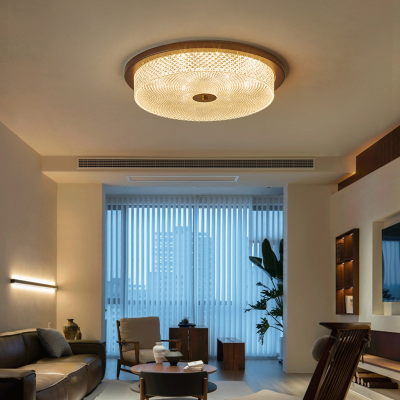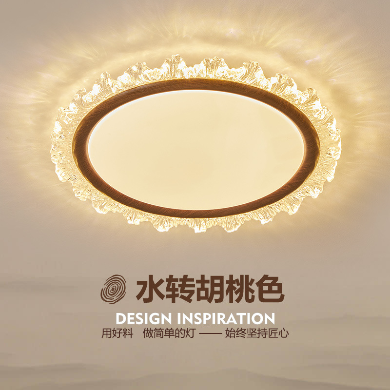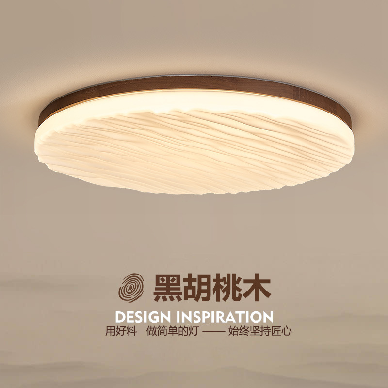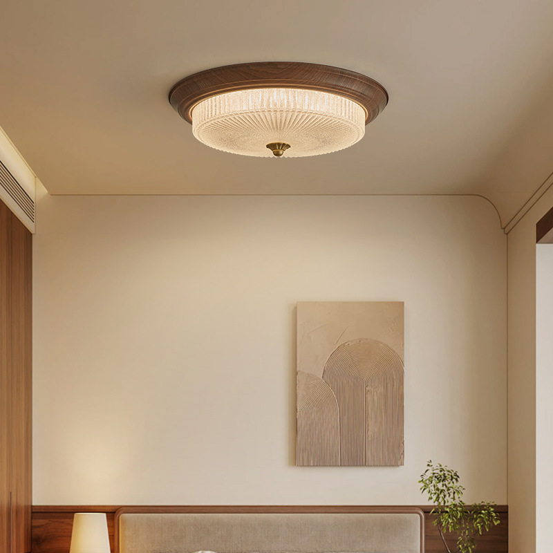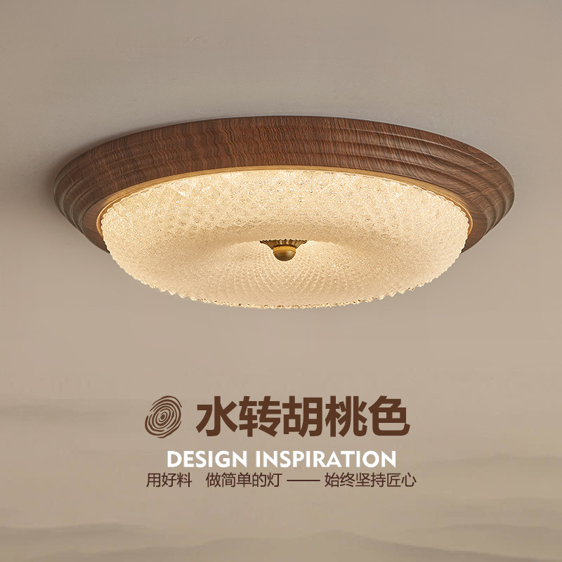中古風寝室ランプ新中国式レトロ胡桃色木目天井ランプ高級感軽豪華主臥書斎照明