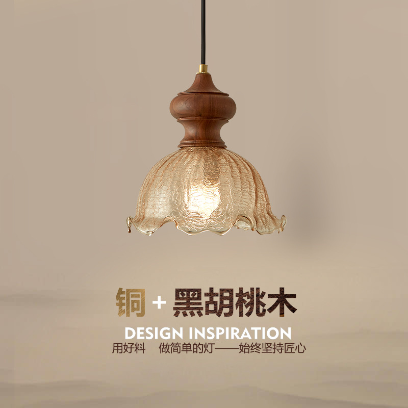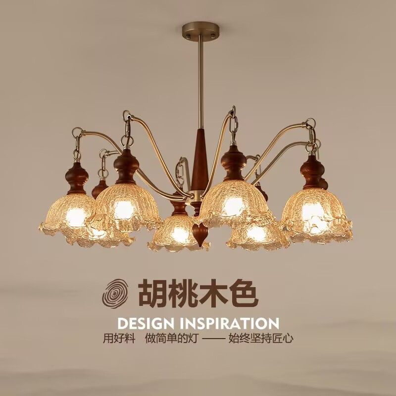 中古風シャンデリア客間主灯フランスレトロ胡桃木全銅食堂灯デザイナー布芸寝室照明
