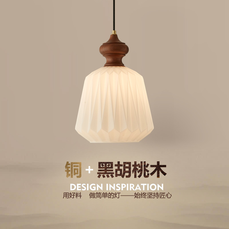 中古風寝室灯天井灯胡桃色木目主臥灯新中国式レトロ風バルコニーガラス灯