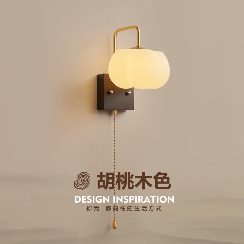 中古寝室ランプ天井灯アメリカレトロ田舎胡桃色木目主寝室ランプ新中国式陽電気スタンド