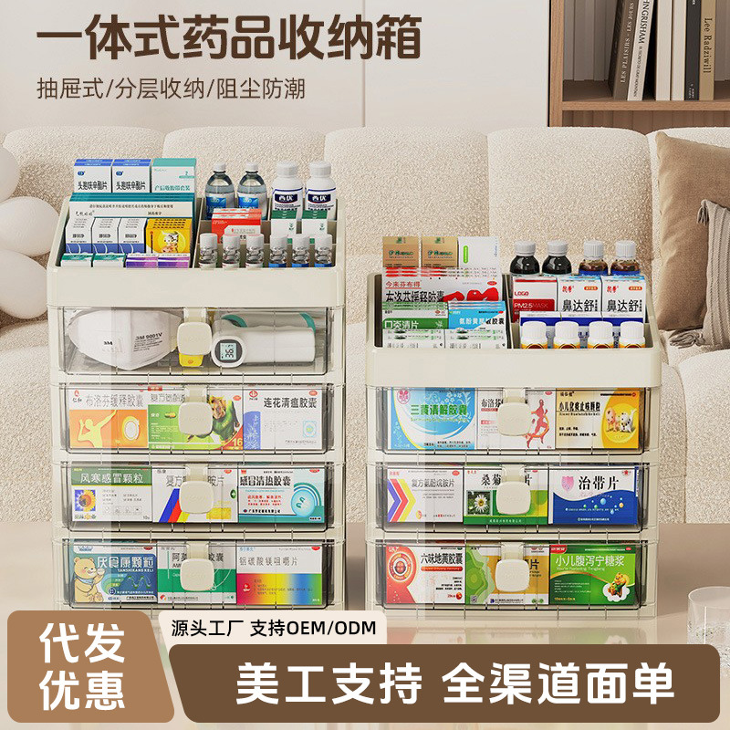 薬箱家庭用大容量収納棚薬物分類整理小引き出し式物置棚保存薬箱