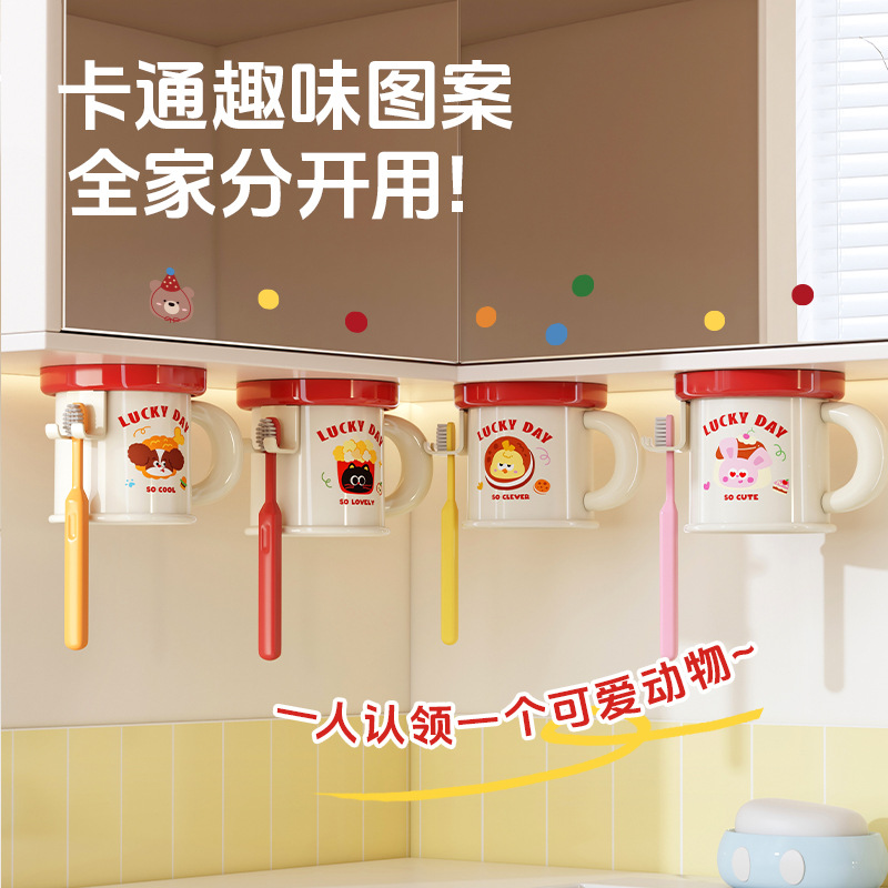 磁気吸引洗面カップ家庭用倒掛鏡箱の下に穴を開けないドーパミン浴室洗面台一家四口歯ブラシカップ