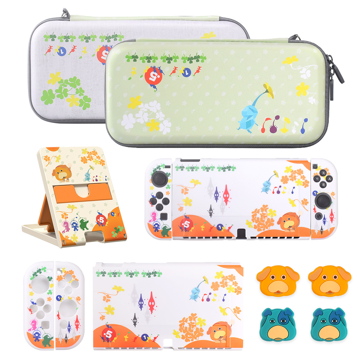 Switch収纳バッグswitch OLED保护シェルキーキャップ本体スタンドピクミンモチーフアクセサリー