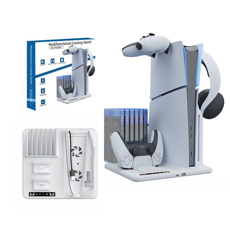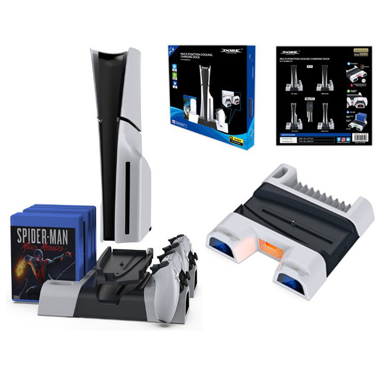 PS5 Slim本体多機能放熱充電ベースブルーレイPS5ゲームハンドル付き充電ディスク収納