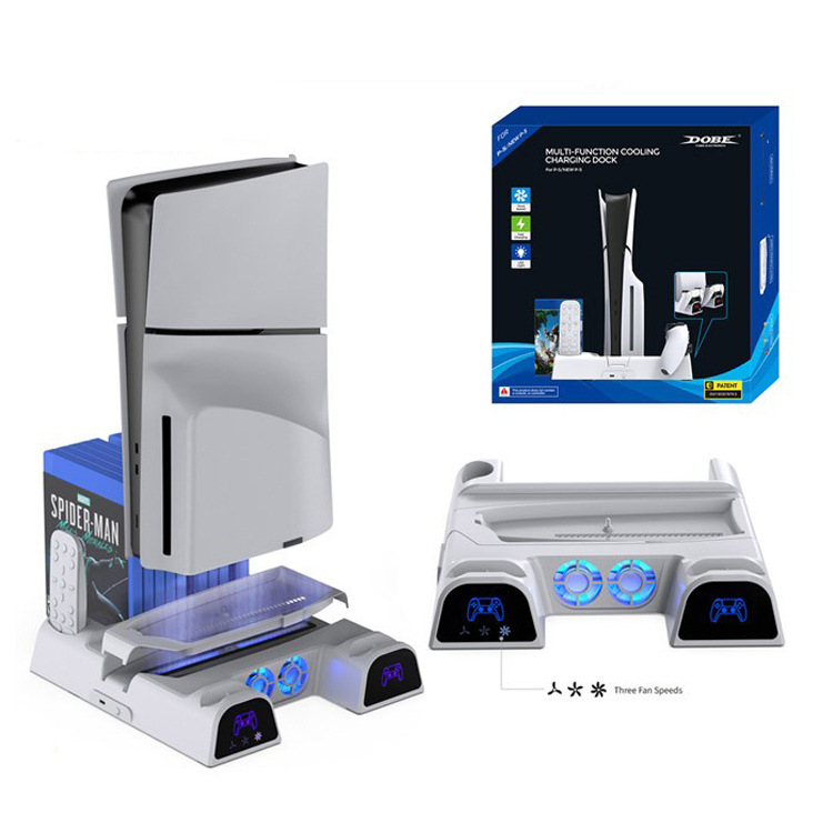 PS5 Slim多機能放熱ベースディスク収納棚ライト付きPS5ハンドル二重充電TP5-3536B