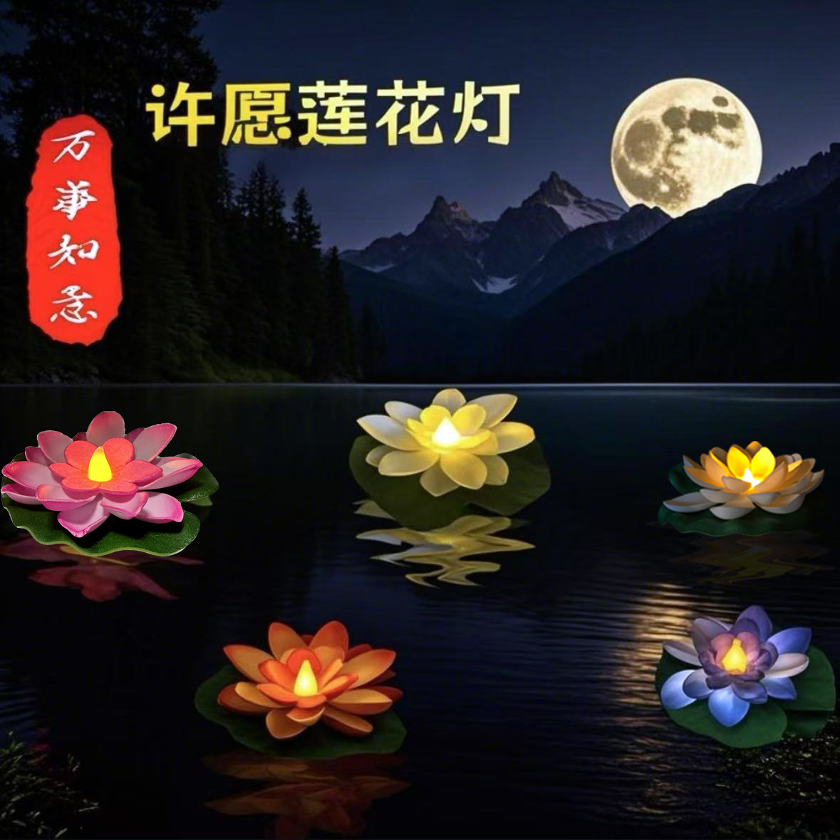 Led電子ろうそく灯シミュレーションハスの花浮水ろうそく河灯願い事蓮の花灯電子ハスの花