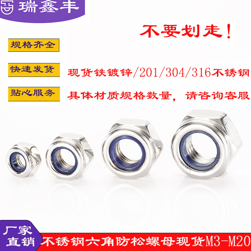 201ステンレス防松ナットセルフロック304ブルーナイロンロック六角ナット316 m 4m 5m 6 m 8m 10