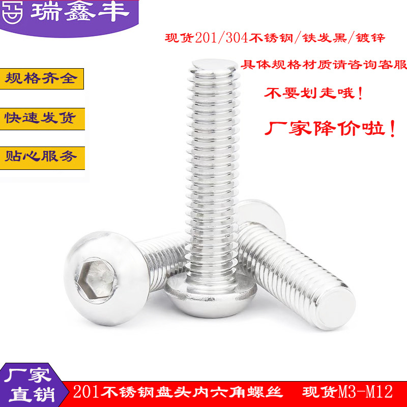 ステンレス半円頭六角穴付きボルトm 3m 4m 5家具ネジm 6十字なべねじm 8m 10m 12