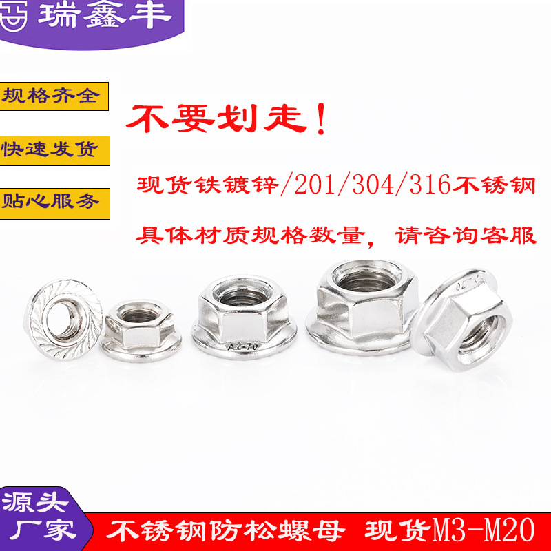 304ステンレスフランジナットm4 m 5m 6m 8m 12滑り止め防松マット付き六角ナットねじメーカー201