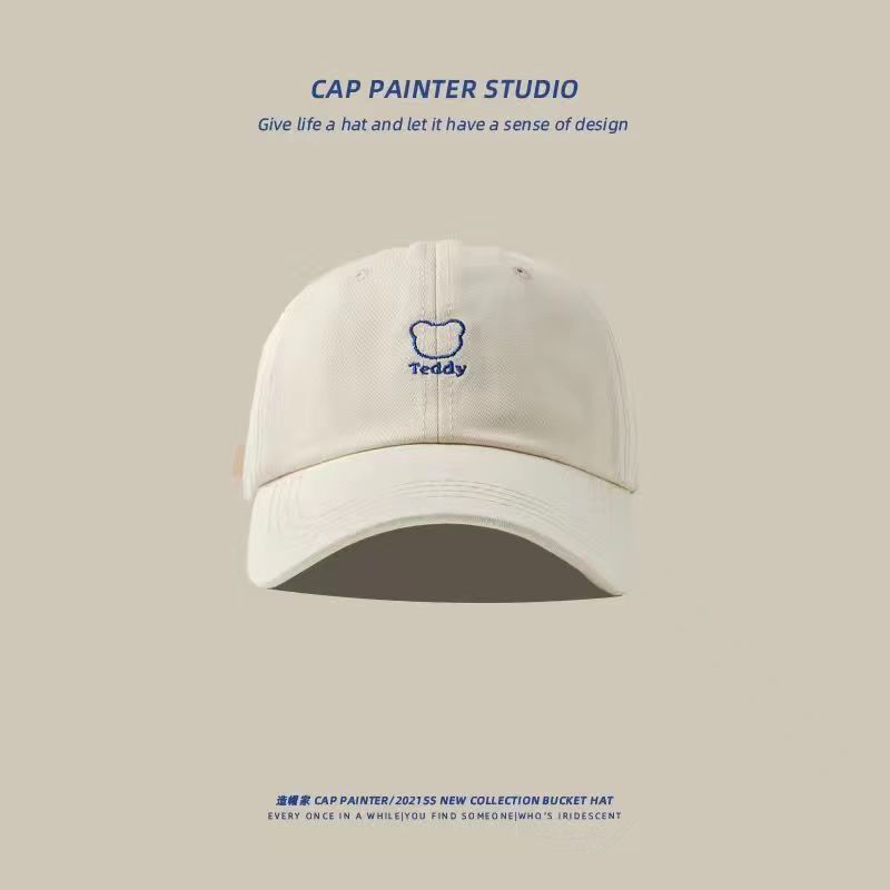 韓国版のレトロなかわいいクマの漫画刺繍ひさしキャップ女性のための春と夏のトレンディなブランド日焼け止め野球帽