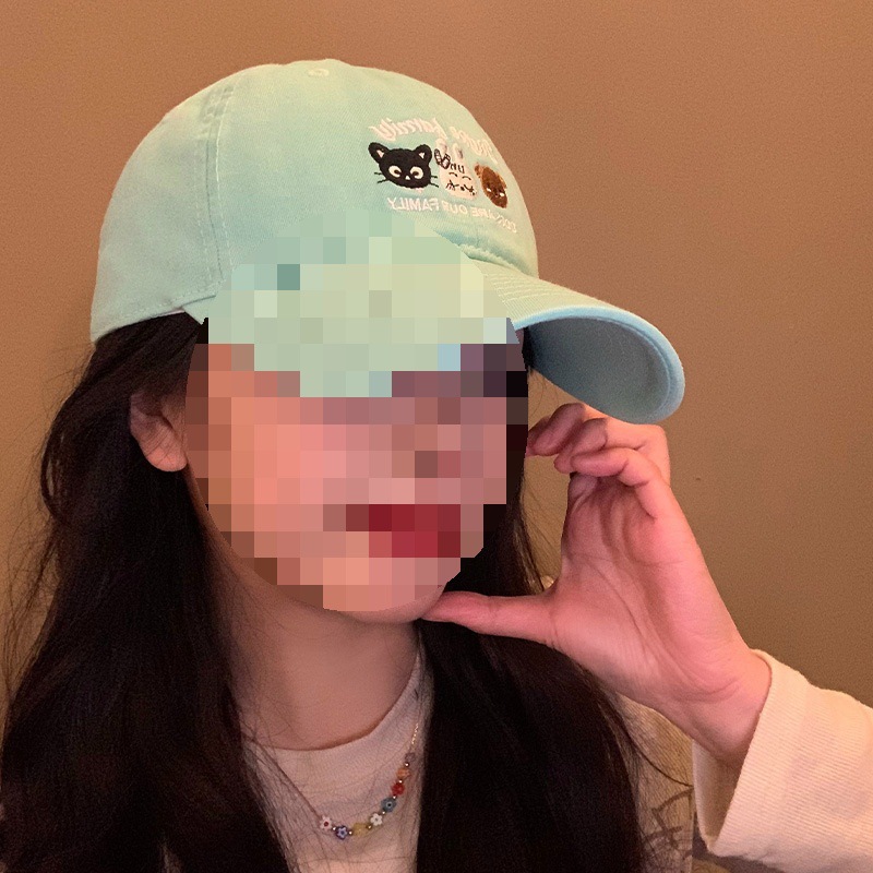 女性用グリーン刺繍野球帽、韓国風、多用途、大きな頭囲、顔が見える、小さなひさし付きキャップ、つばの広い帽子、大きな顔、深いトップハット