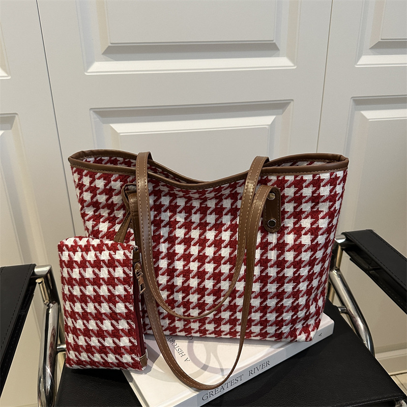 美しくシンプルでカジュアルな雰囲気のポータブルトートバッグ2025ストライプチェック柄大容量ショルダー脇バッグレディースバッグ
