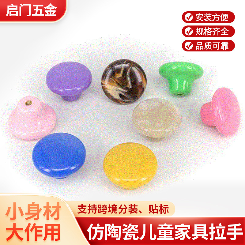 プラスチックは陶磁器の子供の家具の取っ手の円形の単孔の多色の食器棚の小さい取っ手のタンスの引き出しの装飾の取っ手をまねます。