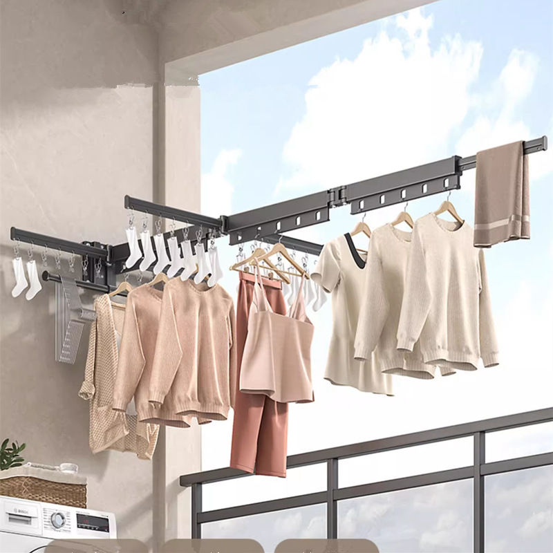 折り畳み穴なしハンガーの見えない伸縮壁掛けベランダの布団の神器室内室外の収縮服の棒