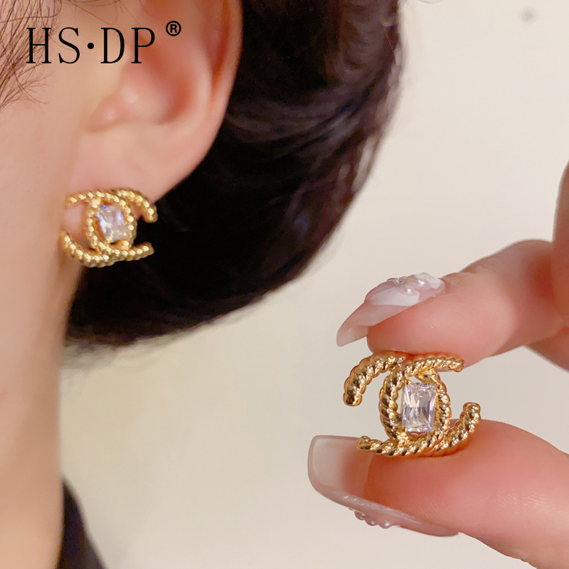 S925銀針ファッションデザイン感金属麻花入ドリルクロスピアス気質シンプルなイヤリング卸売り