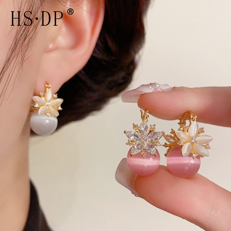 フランス式の軽豪華な高級感の両面には、ダイヤモンドの猫の目の花のビーズの耳のボタンの気質があります。