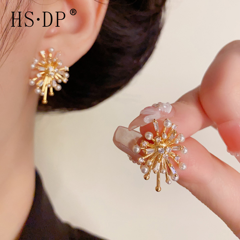 s925 シルバー針ファッションライト高級デザインパールダイヤモンド花火イヤリングパーソナライズされた多用途高品質イヤリング卸売