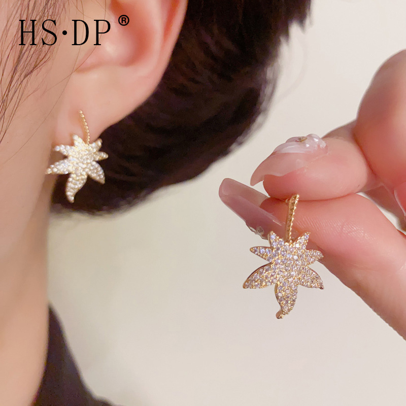 s925 シルバー針絶妙なファッションライト高級フルダイヤモンドカエデの葉のイヤリング女性のニッチな気質シンプルなデザインのイヤリング卸売