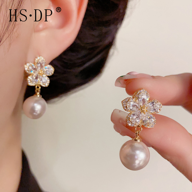 春の新作ファッション高級感ジルコニウム花真珠イヤリング